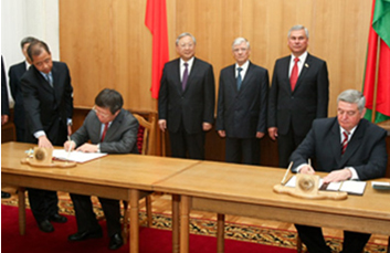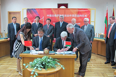 2012年5月21日,科技部副部长曹健林与白俄罗斯共和国国家科学技术委员会主席沃伊托夫在白俄罗斯首都明斯克共同签署了中白两国政府关于成立中白高科技合作委员会的协定(此照片来自网上)