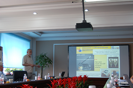 交流期间,白俄罗斯国立大学核问题研究所副所长S. Maksimenko教授介绍了碳纳米管聚合物复合材料、纳米碳蜂窝材料、纳米碳改性磷酸盐等纳米碳材料在电磁领域的应用,S. Maksimenko教授介绍了高双光折射率混合液晶的制备及评价方法,对其在微波通讯领域的应用进行了展望。