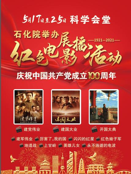 2021年是建党一百周年,百年风雨兼程,世纪沧桑巨变。为继承和弘扬党的光荣传统和优良作风,5月17日至25日,石化院在科学会堂组织开展红色电影展播活动,引导全院党员干部学习党史、传承红色基因,立足岗位,以实际行动献礼建党百年。