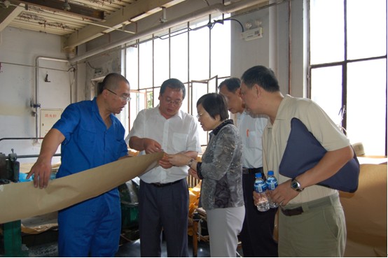 王欣司长在省石化院白雪峰院长陪同下参观石化院中试生产基地胶膜生产