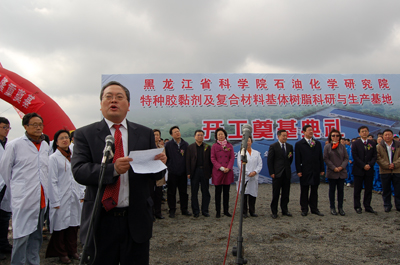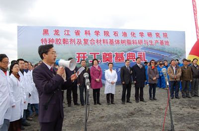 随后,科学院王钢副院长发表了热情洋溢的致辞,他指出:黑龙江省科学院石油化学研究院是民口重点配套单位之一,长期承担大型国家专项任务,为地方经济的发展和国家航空、航天事业的发展做出了突出的贡献。此次“特种胶黏剂及复合材料基体树脂科研与生产基地”建设项目的奠基,标志着国家“小批量、多品种”科研生产基地正式落户黑龙江省,正式落户黑龙江省科学院石油化学研究院!他希望石化院以此次项目建设为契机,不断提升科技创新能力、不断开发高端产品、不断增强发展后劲,为龙江经济的发展,为石化院事业的做大做强做出新的贡献。