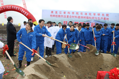 接着,南岗区区领导、科学院领导、石化院以付春明同志为代表的老一辈科研工作者、以曲春艳同志为代表的科研中坚力量、以吕宏飞同志为代表的中青年科技骨干和以赵玉宇同志为代表的年青科技工作者等各层面代表共同为“特种胶黏剂及复合材料基体树脂科研与生产基地”建设项目奠基培土,奠基场面令人鼓舞,激人奋进!大家纷纷表示会把这种热情熔入到以后的工作中,为石化院的发展做出更多更优异的成绩,为完成“创新2020”发展规划和“双倍增”目标做出更大的努力,以优异的工作业绩向建院“五十”周年献礼!