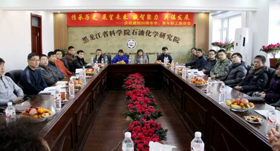 2012年12月17日,为庆祝建院50周年,我院举办了以“传承历史 展望未来 凝智聚力 共谋发展”为主题的中、青年职工座谈会。座谈会由院长白雪峰同志主持,党委书记王莉同志及各部门青年科技工作者30余人参加了会议。