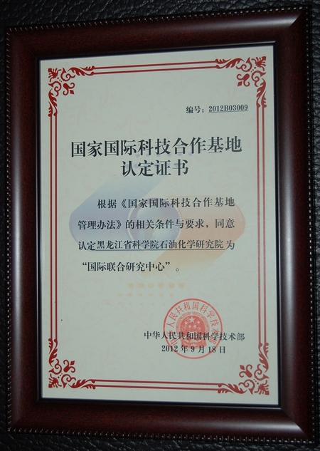 黑龙江省石化院喜获“国家国际联合研究中心”证书