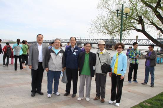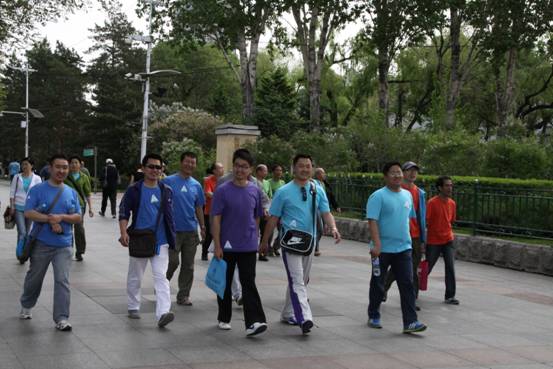 初夏时节,松花江畔景色宜人,早上飘过的毛毛细雨丝毫没有影响到石化院职工的徒步热情。七点半刚过,徒步起点哈尔滨青年宫广场刀旗猎猎,彩旗飘飘,欢声笑语中,身着七彩T恤的石化院职工在此集结,几位退休的老同志也兴致勃勃地前来助阵。八点整,院长白雪峰鸣枪发令,全体参赛职工热情高涨,争先恐后地开始了徒步行程。这支着装整齐的队伍,成为松花江畔一道亮丽的风景线。