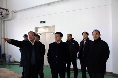 (杨厅长一行在省石化院院长白雪峰陪同下参观石化院中试生产基地)