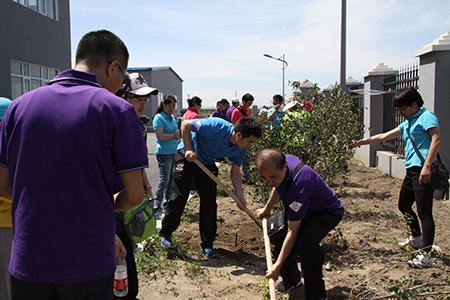 随后,在基地以部门为单位开展了“美化家园”植树活动,大家挖坑、填土、浇水,在种下一棵棵丁香树的同时,也种下了对石化院未来的美好希望!