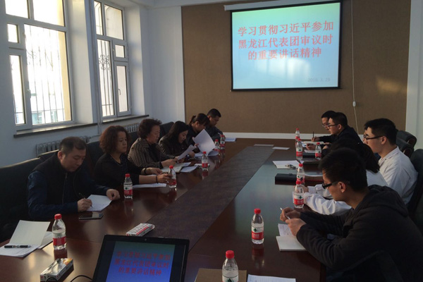 首先,院办公室党支部高伟、张虞及石化院创新团队所在党支部书记李刚分别带领大家认真学习了习近平总书记在黑龙江代表团审议时的重要讲话精神、王宪魁同志和杨汭部长在研讨班上的总结讲话等3个文件精神。接着,院办公室主任章力传达了28日赵梅书记在专题学习视频会议的总结讲话时提出的“五点思考、六个要求”。最后,石化院党委书记王莉号召与会同志要把学习习近平总书记重要讲话精神与“两学一做”学习教育结合起来,要结合实际,按照总书记重要讲话精神,解放思想、统一意识,立足岗位,干事创业谋发展,要在学中干,在干中学,以学促干,以干促学,全力推动今年各项重点工作。
