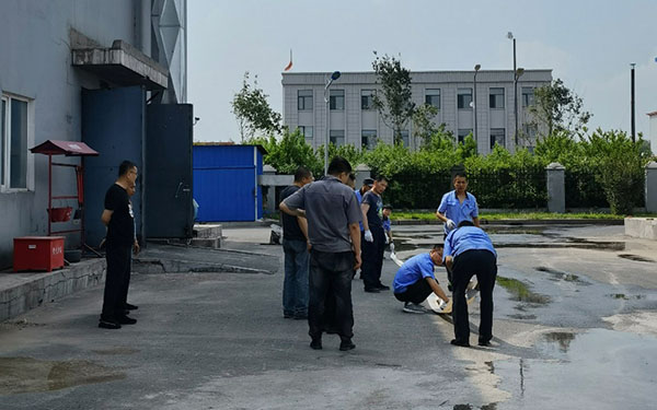 演练活动分为会议模拟火灾处置培训和现场消火栓、灭火器使用及人员疏散演练两个部分。按照石化院消防应急预案的要求,成立演练领导小组,下设5个应急救援小组,分别为灭火组、通讯组、后勤保障组、疏散引导组、安全救护警戒组。上午10:00演练开始,模拟基地二车间局部出现火情,由安全顾问详细讲解5个小组紧急启动预案后,如何分工明确、相互配合、各司其职、有条不紊的进行人员撤离和处置火情。下午14:00进行实际演练,参加人员主要是各部门负责人和安全员以及部分关键岗位操作工人。现场进行消火栓、灭火器的实际应用,通过操作,参加人员都达到了熟练掌握和使用的目的。